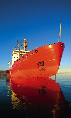 一九九二年我第一次踏上加拿大北疆,是為《讀者文摘》進行專題報導。當時搭飛機到達伊夸魯特(Iqaluit),看見美如綠松石的冰封海水,不禁嘆為觀止。我還參加了一場海象狩獵,乘著狗拉的雪橇在浮冰上前行,忽然發覺冰面開始迸裂,連忙全速前進,和逐漸分崩離析的藍色巨型冰塊賽跑。我對北極冰的巨大力量多少有了點體會,更加心生敬畏,也更想多點了解這片陌生的土地。現在有機會搭破冰船到北極圈,正是我多年來夢寐以求的事。搜尋漁民只是此行的一段意外插曲。我們的主要任務是先到巴芬島(Baffin Island)北端的納尼希維克(Nanisivik)裝載燃料、食物、建築材料和一輛小卡車,然後北行