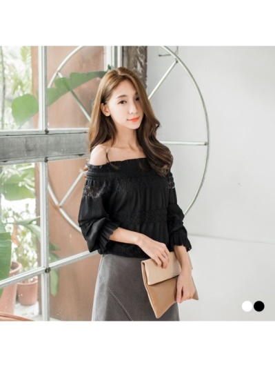 素色鏤空雕花造型一字領上衣.2色Ptt及Dcard推薦的人多嗎
