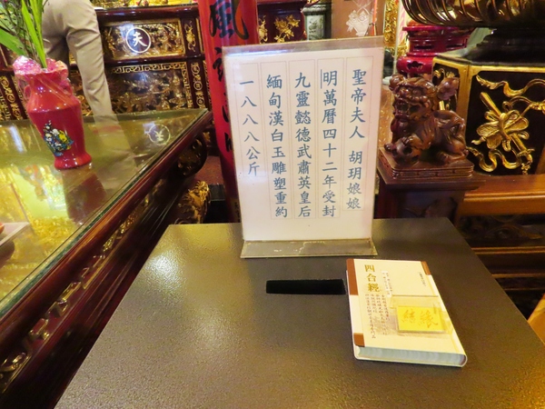 聖帝夫人: 即關聖帝君的妻子。在歷史文獻中,關羽的妻子記載不詳,常被簡稱為「胡氏」。在民間信仰中,為了恭敬和完滿神祇的家庭形象,便給予了正式的尊稱和神位。
