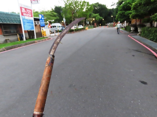 於是我獨自一人氣喘吁吁,帶著病體去往公園駐警隊借了一隻長竿、一隻剪刀、一把鐮刀、一綑膠帶,回到湖邊