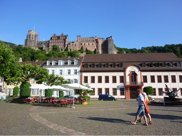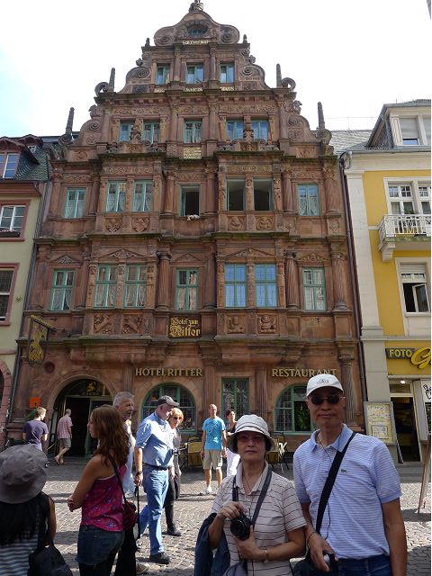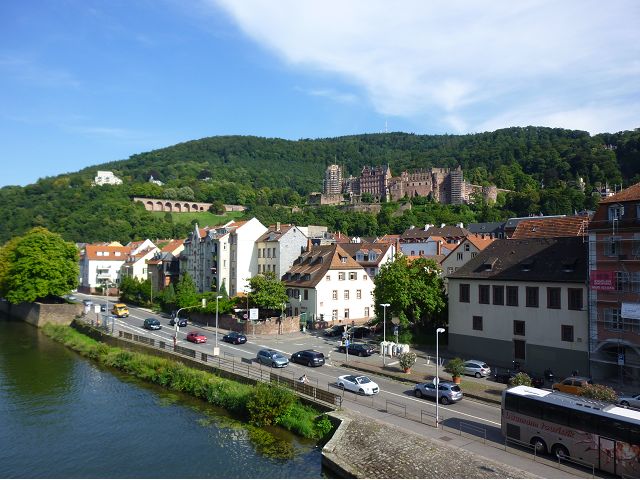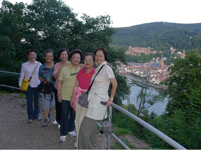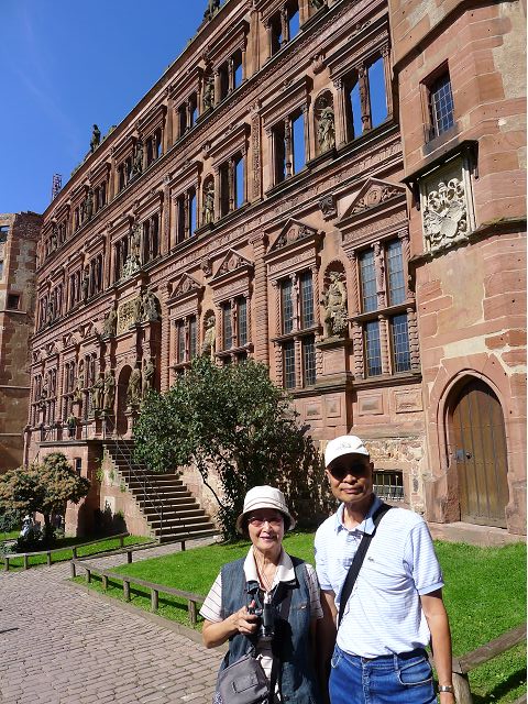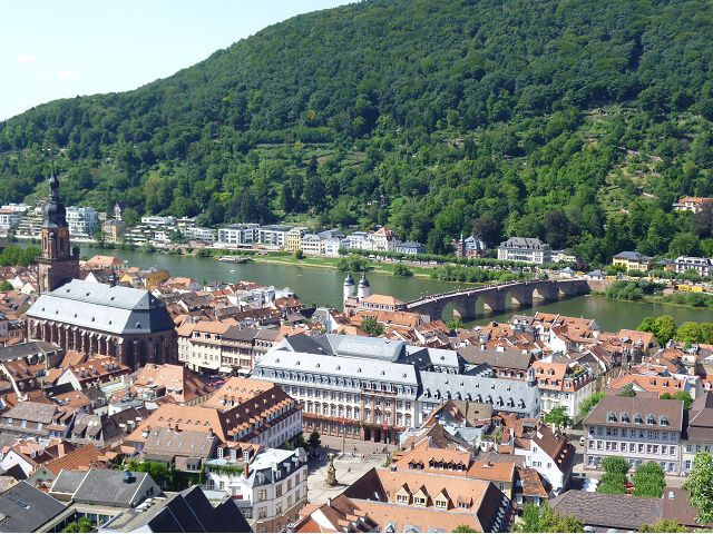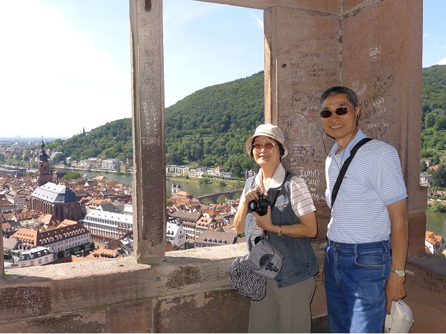 走遊賞心悅目的佛萊堡老城區、也在市中心的餐廳午餐之後,首途海德堡(Heidelberg),參觀古堡,遊覽市區、大學區。海德堡是舉世聞名的大學城,座落奧登瓦德山(Odenwald Mt.)邊緣,傍內卡河(Neckar River),青山綠水間,擁有石橋、白牆紅瓦的老城區建築,還有中世紀古城堡,以及創立於1386年的海德堡大學,詩人、哲學家和藝術家輩出,浪漫迷人。海德堡此行所去景點,主要就是神聖羅馬帝國選帝侯的居所-海德堡城堡(Schloss Heidelberg),再加上老城區、古橋(Karl-Theodor-Brücke,又稱老橋Alte Brücke)、哲學家之道(Philosophenweg)等景點。