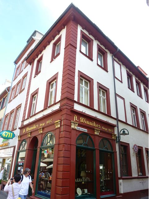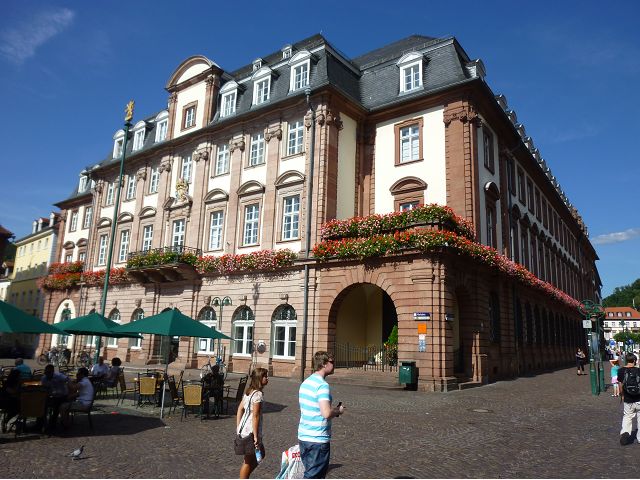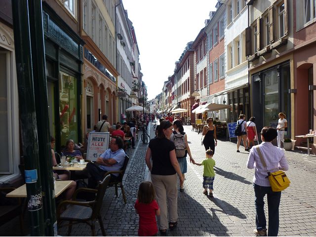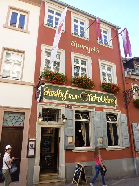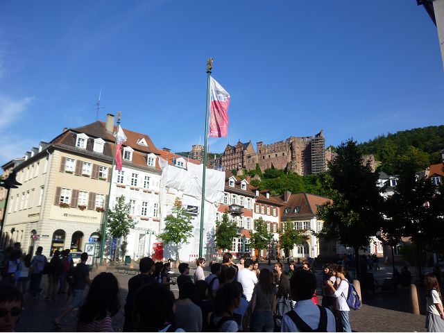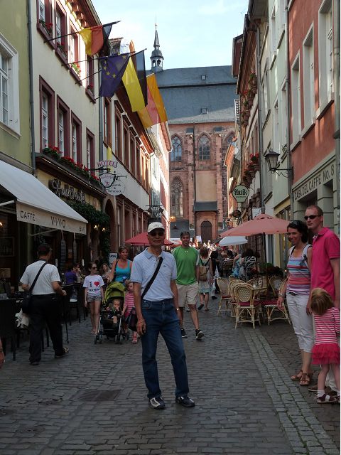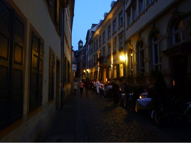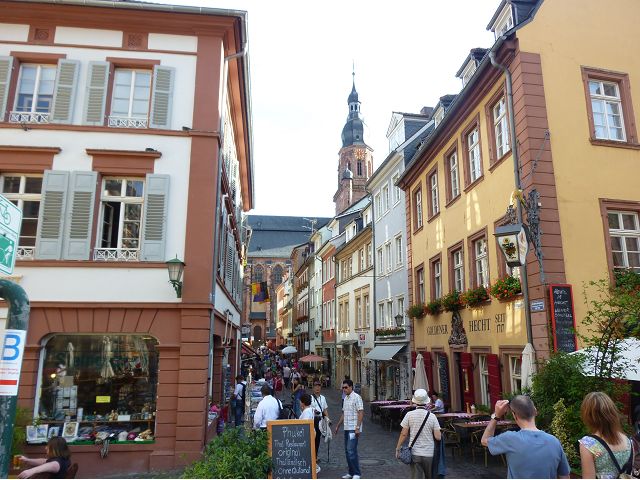 旅行團安排從城堡搭台車下山到市區,海德堡的舊城區面積不大,東邊俾斯麥廣場(Bismarckplatz Park)、西邊市集廣場(Heidelberger Marktplatz),一條長長主街Hauptstraße,供購物、用餐為主。海德堡大學系館遍佈在舊城區裡,約16萬城市人口中,學生教職員估計佔1/5,是名副其實的大學城,最知名的景點是大學監獄(Studentenkarzer),昔日監禁犯錯學生於此,留下許多塗鴉,惟監獄早於1914年關閉,目前開放參觀。之外,有聖靈教堂(Heiliggeistkirche)、Hotel Ritter、餐廳Zum Guldenen Schaf等景點,以歷史悠久取勝。漫遊途中,喝了現搾黑啤酒,濃郁、好喝;在好萊塢經典歌舞片"學生王子(The Student Prince) "曾取景的酒店場景中晚餐,只記得氣氛古典優雅。