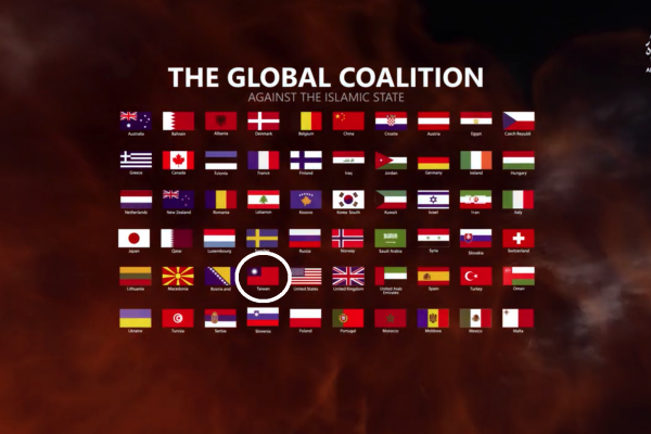 美國總統歐巴馬日前在東亞峰會點名台灣是「反伊斯蘭國聯盟」成員,引發台灣輿論熱議。「伊斯蘭國」(IS)24日發表一支新的網路宣傳影片「莫寬限我」(No Respite),向美國及其59個盟邦「叫陣」,其中標示為台灣(Taiwan)的中華民國國旗赫然在列,令人擔心我國是否已經被列入「伊斯蘭國」的恐攻目標。