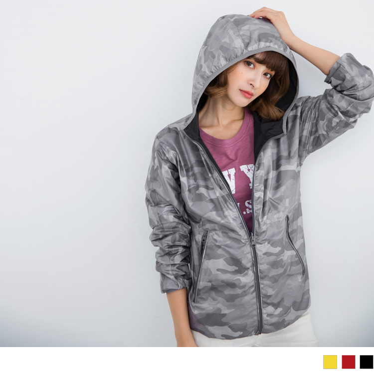 防潑水迷彩正反兩穿連帽外套夏天穿會不會太悶熱如何穿搭比較好看