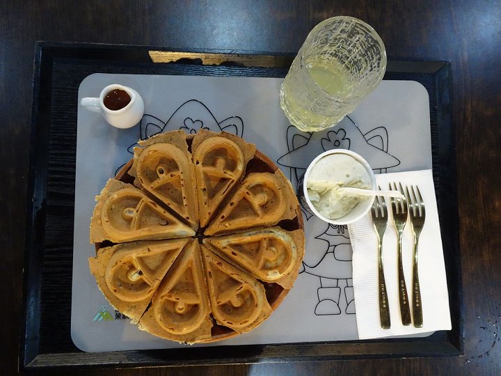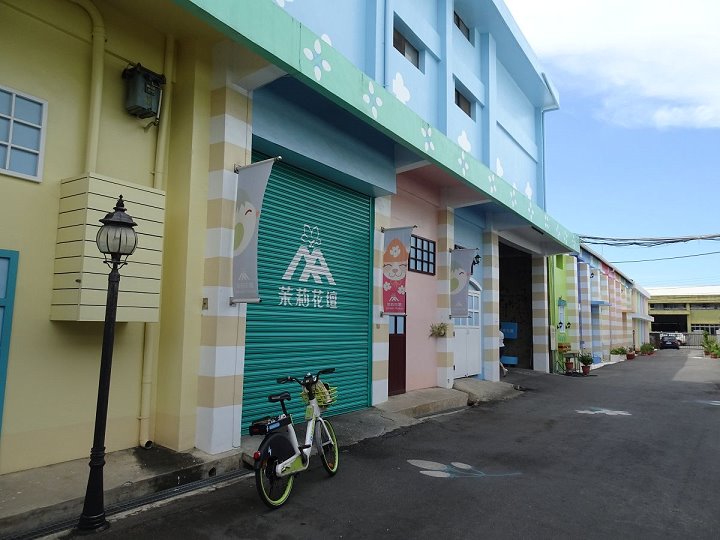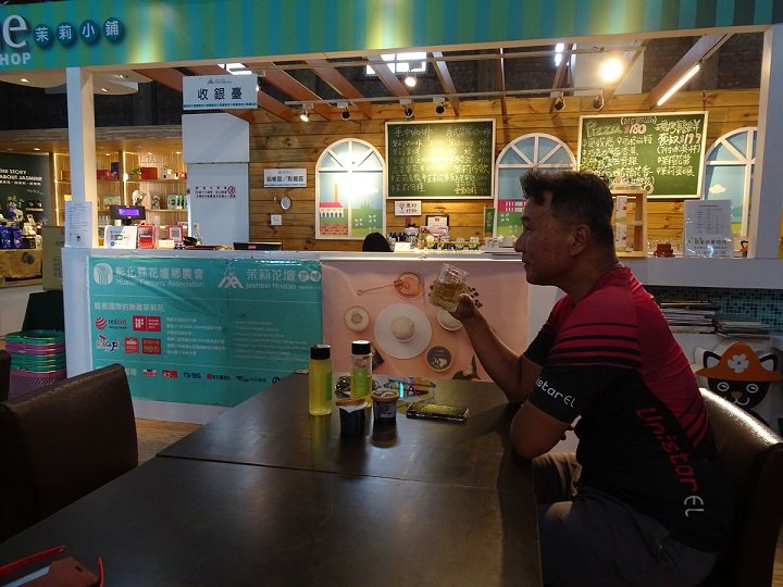 農會倉庫看起來老有年紀,老邁身軀上以茉莉題材彩繪上光鮮亮麗的年輕故事,走進來身體一輕,也感覺年輕了好幾歲呢!倉庫後面種了一小方苿莉花園,毛苿莉正在盛開,古老建築與新開花朵交疊著,那種美感有新有舊,對比強烈卻一點也不突兀。中午了,大熱天裡騎了好幾個小時單車,剛好倉庫裡有茉莉茶鋪,店裡冷氣開得剛好,不太冷,又能解暑。坐下來,點了一杯茉莉冷泡茶和茉莉果醬鬆餅,花香伴著花壇的故事,茶特別香、果醬特別甜。