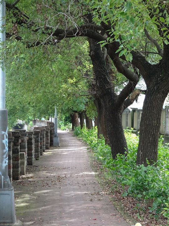 花壇市街外不遠處有個馬家莊,騎單車過來大約十分鐘左右,村莊裡有很漂亮的樹廊步道,還佇著已經荒廢的八掛窯。花壇曾經紅磚窯業興盛,生產量不足情況下,從德國引進產量較大的磚窯,因為形似八掛,所以大家稱為八掛窯。這讓我想起,小時候的中和,積穗附近近也有一座磚窯,小孩常常跑到磚窯看工廠製磚,一晃就是四十年過去了。那年的台灣製磚情景,彷彿又再次被喚醒。