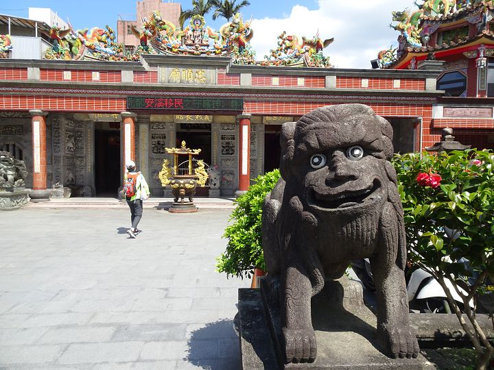 忠順廟前的石獅。歲月的痕跡讓雕刻更顯溫潤,守護著這片土地從神社到寺廟的變遷記憶。