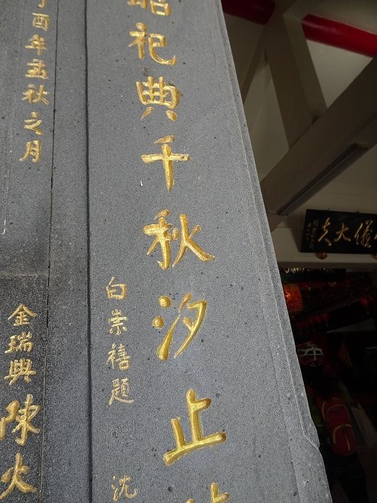 走近忠順廟,石柱上刻有那個年代的名人落款,走過歲月的過程,被記載在廟宇的細節裡。