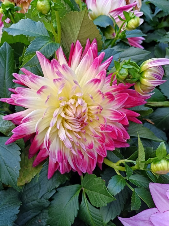 針對您存疑是菊或非菊之說,我個人依其花朵及葉片等特徵認為是大理花;之所以也在菊花參展中,是因為大理花是菊科大麗花屬的一個栽培種。