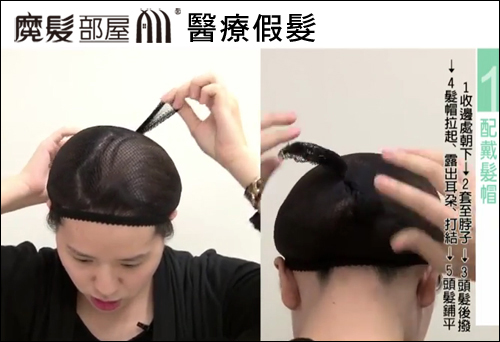 (若短髮、大量掉髮可省略配戴髮帽,直接配戴假髮)