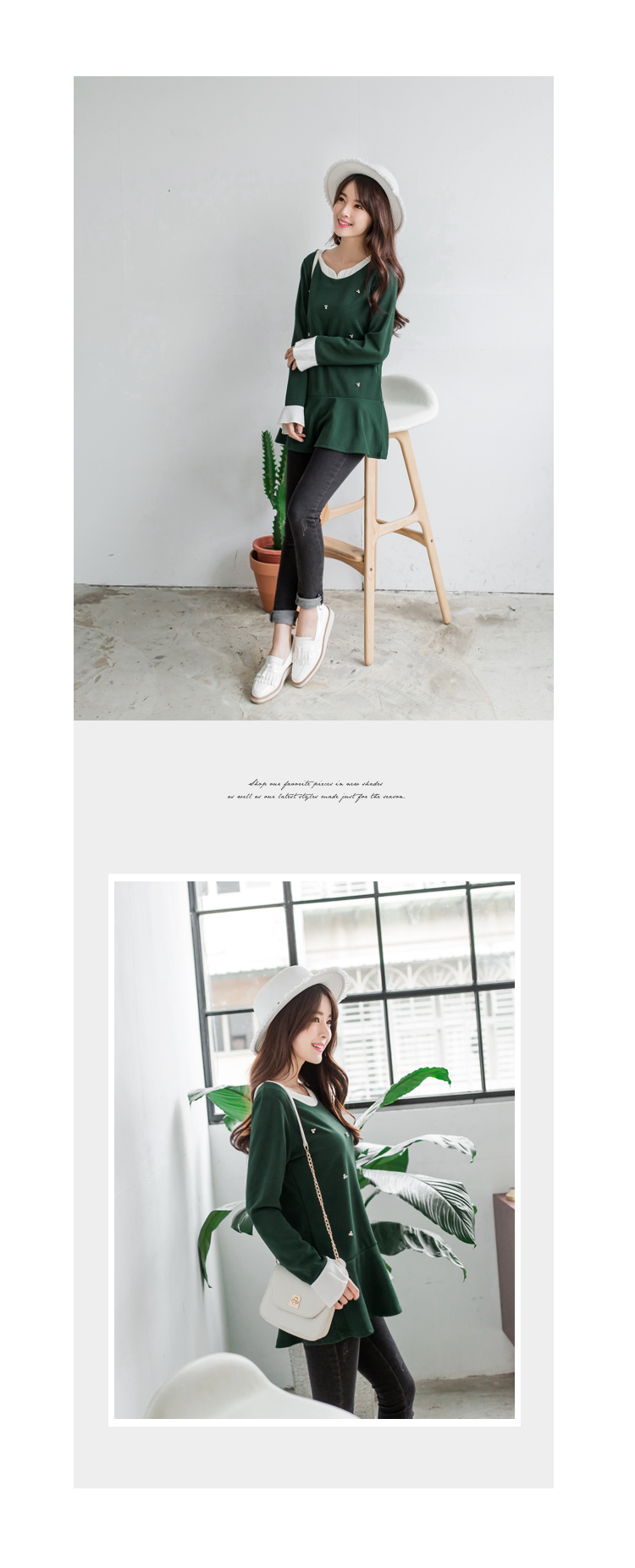 配色珠飾點綴造型拼接荷葉袖傘襬雪紡長版上衣.2色夏天穿會不會太悶熱如何穿搭比較好看