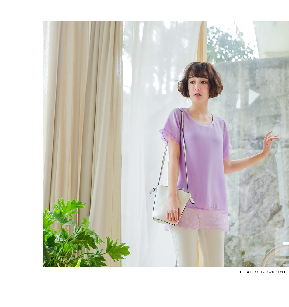 袖口下襬羽毛蕾絲拼接純色長版上衣夏天穿會不會太悶熱如何穿搭比較好看