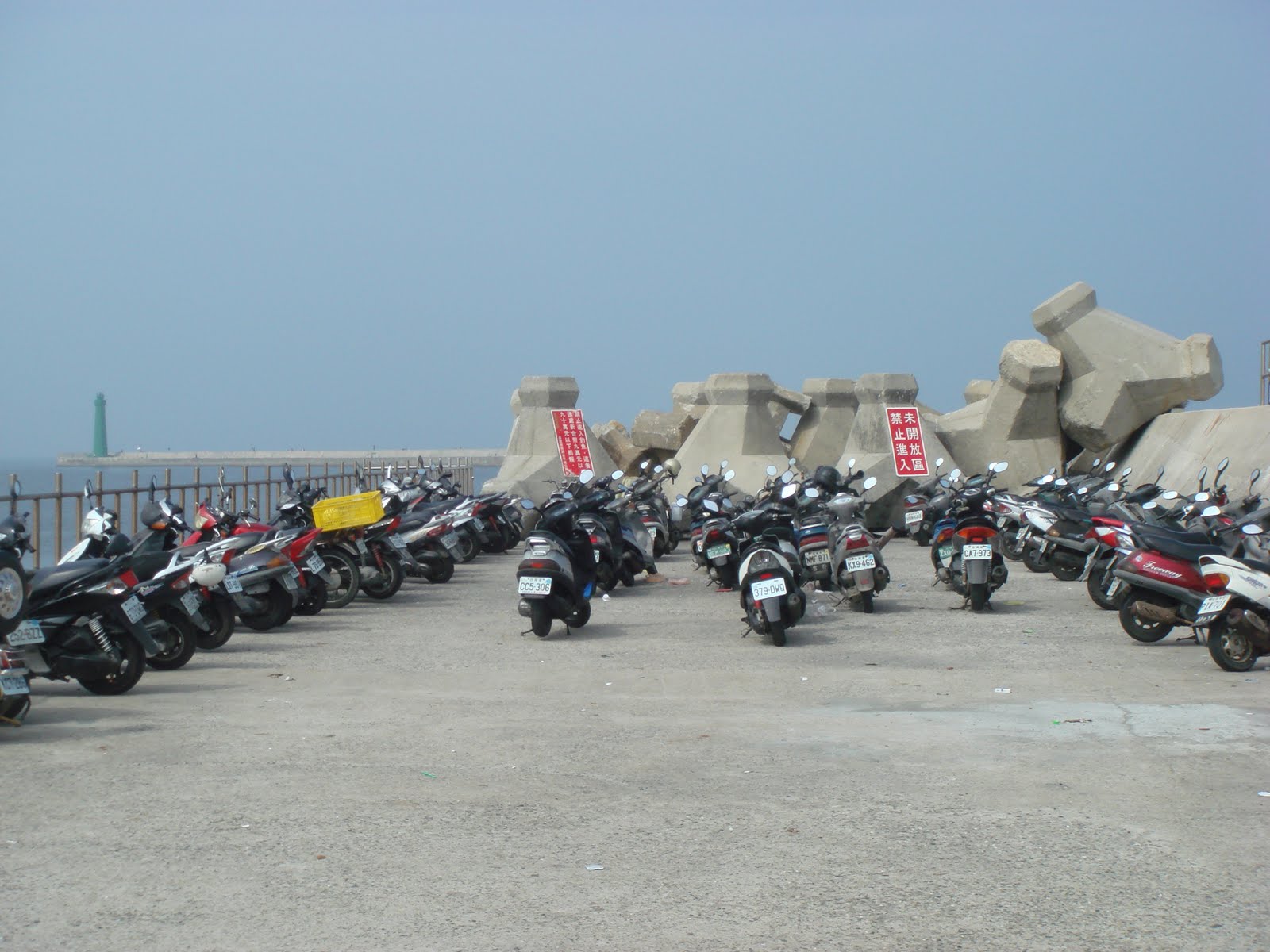 漁光島左下方新建的三鯤鯓15-21碼頭區(下圖往右走),就可看到虛擲公帑造就的龐然廢物分漁船、商船碼頭,耗用公款數十億,可能建好之後從來就沒有一艘船停泊過,已成廢墟、釣魚台,