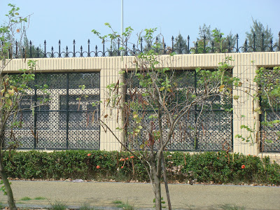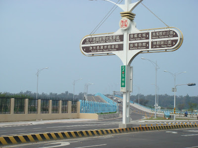 驗關區層層圍牆,一直延伸到漁光橋上,分割橋面,再繼續到台南市區不知何處,漁光橋被高牆圍著的另一半(下圖),可能建好之後從來沒有報關車通行,國庫公款,數以百十億人民的血汗稅金,就這樣白白浪費了。