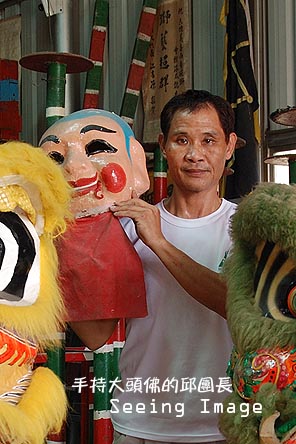也懂得自製道具、獅頭的邱團長,在為我示範舞獅基本動作與步驟之後發下宏願:「我希望將來可以將客家獅與廣東獅做結合,讓客家獅變得有可看性。」他經常受邀到學校、社團訓練獅隊、鼓隊,對於客家子弟學習廣東獅的意願頗感失望:「在高雄市反而推廣得比較好。」他接著又說:「我在等著他們長大。」邱團長也曾經在竹田國小訓練過以鑼、鈸、鼓為主的「戰鼓團」,他希望這些小朋友將來可以成為獅隊的生力軍!