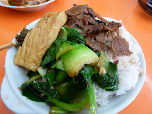 雖然她說剛點的蒸餃口感也不過普普而已,但吃慣台灣柔嫩可口的米飯的我碰到有點硬口的白飯還是沒輒了;見狀,她又繼續笑問,乾巴巴蒸餃與沒啥料又有點硬的牛肉飯,兜飢?!