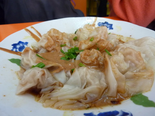 她先點了份乾拌餛飩,然後再點上一籠蒸餃,不管走到哪兒,蒸餃湯包之屬都在她的物色範圍內,U對這類食物幾乎沒有抵抗力,除了愛吃,一方面也是為了跟南翔小籠做個比較,看來偏貴的南翔小籠湯包還是讓她有點捨不得。(笑)