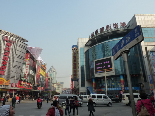我們從天潼路站的地鐵口出來,映入眼簾的是一棟又一棟的服裝批發大樓,頓時景象讓我有點熟悉,去年十月到廣州時,我也陪她去了一趟廣州的服飾批發市場,那邊的擁擠和混亂記憶猶新,上海七浦路也有類似的感覺給我。