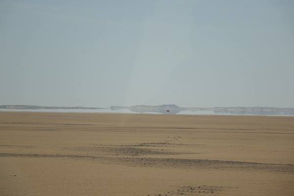 參觀過雙神殿後,搭乘大巴士要原路回到亞斯文(Aswan)的遊輪上,距離285公里,沿途經過大片無邊無際的沙漠。公路上車輛不多,路上也少人家和建築物,廣大的一片黃沙。日光強烈照在大地上,在車上,導遊哈珊要我們看一下地平線上出現了海市蜃樓。閉目養神的人也趕緊睜眼看這沙漠中的奇景,那漂浮在地平線上的幻影會是湖水? 還是被自然現象給欺騙了?