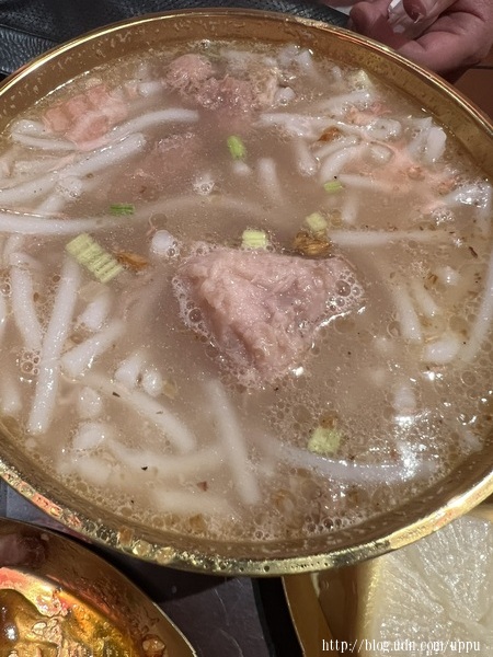他是點芋頭米粉湯,這湯就夠燙夠熱,怎麼會兩碗差這麼多。