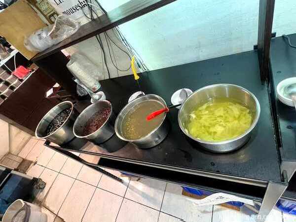 加十元就有紅豆、綠豆、仙草或蛋花湯可以喝,這是最大的救贖。