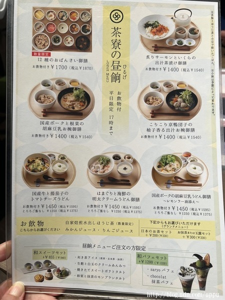 生麩と白玉のクリームあんみつ,お抹茶 または 玉露セット ¥1400。