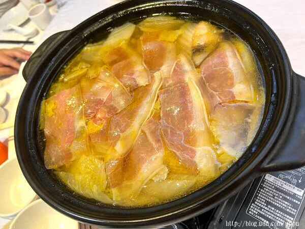 室友不吃魚翅,改為火腿白菜燉雞湯。