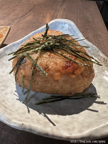 鮭魚烤飯糰,這不是強項,這真的是用烤的嗎?外面那層很妙不是正常烤出來的口感,像塗了一層coating然後黏起來的樣子。