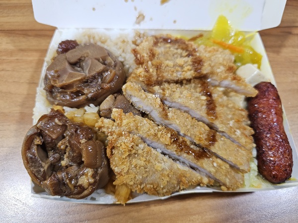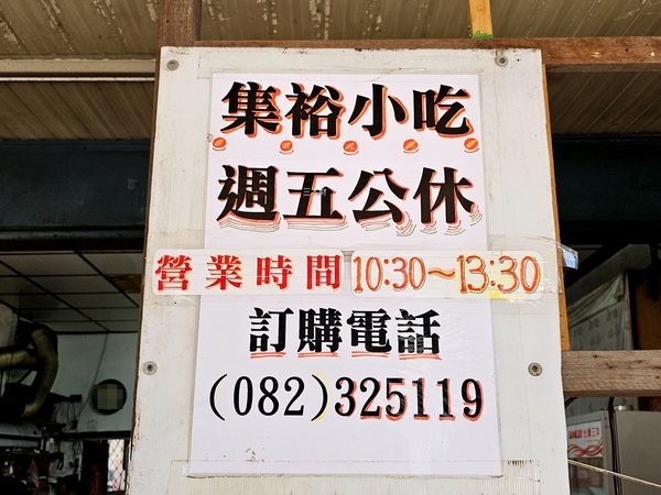 印象中幾個月前集裕便當曾在社團公告因故將休息,只是這一休整整超過4個月,前2天在社團看到Po文店家將於11月30日開始營業;集裕便當是金城地區為數不多要排隊的便當店,每到中午用餐時店門口總是擠滿排隊購買便當的人潮,今天上午問了辦公室的同事中午要不要吃集裕便當?多位同事異口同聲的回我:今天是店家上班日第一天營業現場排隊人潮應該會很誇張,最終我跟另一位同事不死心決定騎車上門購買雙主菜便當...