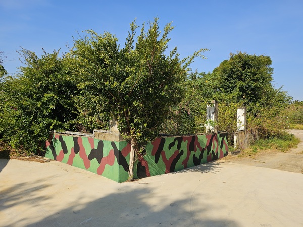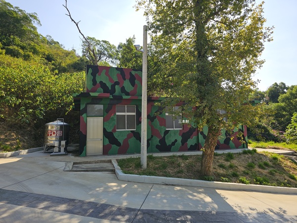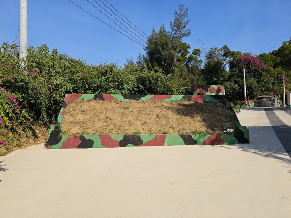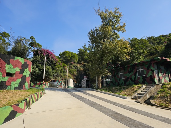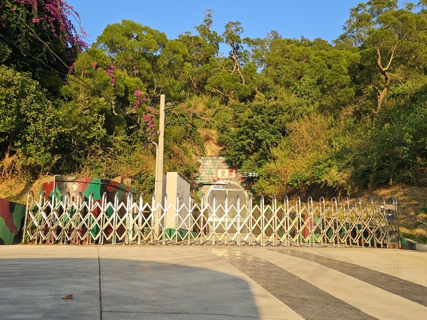 寨子山坑道位於金門東北角山西村北嶽廟旁,轉角拐過去就是寨子山/五虎山登山步道,酒窖入口處的簡介說道:位於金門東北方,於1960年開鑿,原做為後勤補給及作戰掩體,後因該區花崗石風化嚴重,過程中頻頻崩落,坑道越鑿越大故改為火炮使用,名為〝屏東〞亦即屏障金東,屬全坑道式榴砲陣地,坑道結構完整共有四座砲塢,皆有搭建砲班寢室,且具有較大的廣場式空間,可在雨天供部隊操練使用...