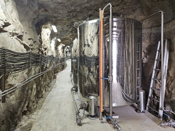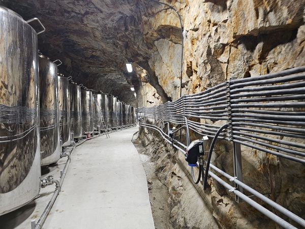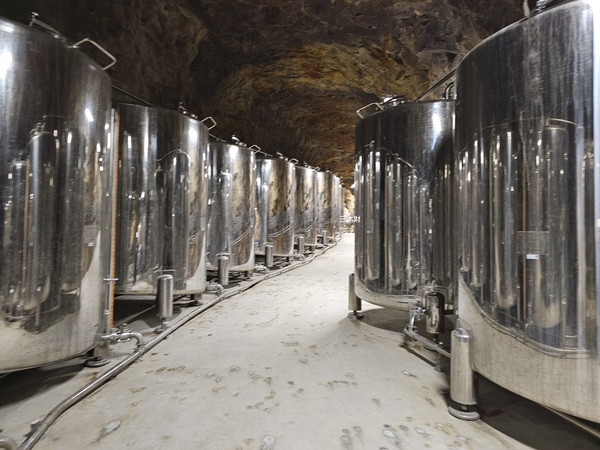 進入坑道後首先您會看到右手邊6500L不銹鋼儲酒桶/20只