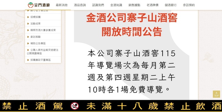 金酒公司從今年05月05日起至12月31日止,推出〝寨子山酒窖預約參訪〞的活動,開放參訪的時間為每週二上午9時及10時2個時段,試營運期間民眾提前預約皆可免費參觀,這回趁著台灣好友到金門時我開車帶他們過來走走...從2026年開始寨子山酒窖開放參訪的時間有異動(2026-01-12更新)