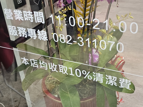 所有餐點皆加收10%清潔費