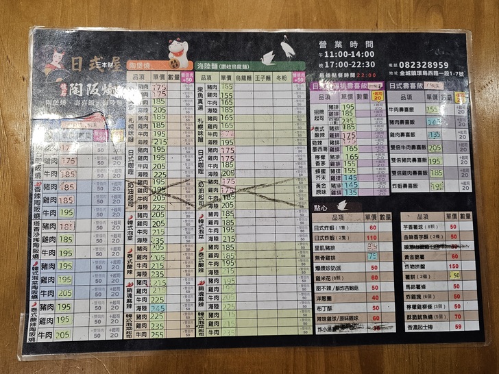 訂位電話:082-328959
