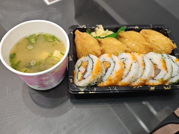 豆皮壽司~45元、花壽司~70元...外帶滿100元送了一碗味噌湯