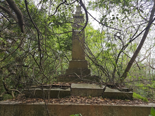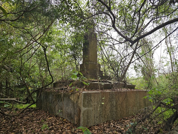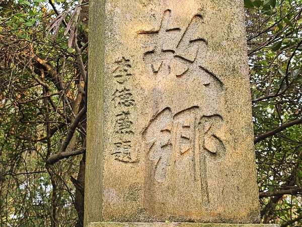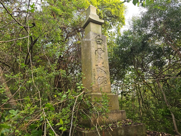 前往白雲故鄉前我跟友人來到吳厝詢問附近的居民,熱心的大叔帶我們前往白雲故鄉附近的農田直指前方說:那片樹林一整片的墓塚就是〝白雲山莊〞,當時我問大叔:為何稱呼白雲山莊?大叔說:他們都是這麼說的!第一眼看到白雲故鄉時蠻訝異的,四面只有一面有白雲故鄉四個字,或許是朝向問題豎碑正面雜草叢生且無法完整看到白雲故鄉及題字,打開手機定位發現豎碑朝向浯江溪口及廈門會展中心的方向,我猜想當年行政長李德廉站在這裡時是否聯想到白雲故鄉歌詞中〝海水茫茫, 山色蒼蒼。 白雲依戀在群山的懷裡, 我卻望不見故鄉, 我卻望不見故鄉〞?幾天後跟另一位友人聊天時問他:要不要帶上砍刀一起去白雲故鄉把豎碑上的雜草清一清?