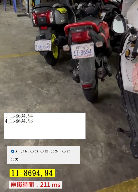 如上的實驗介面其實是告訴大家我的辨識流程不是只有一個SOP,其實我有五套劇本!分別以:M1、L2、H3、X4與Y5代表,每種方案都對特定的影像狀況有較佳的辨識效果,M1就是最通用的一般狀況了!選A時其實就是全力辨識的意思,五套劇本如有需要全部都會用上!較趕時間的動態辨識就可能只限定用前面一兩個較為廣用的方案了!