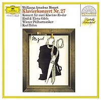 許多偉大的鋼琴巨擎總是將其目光投注到這首協奏曲,筆者最心儀的版本就是吉利爾斯和貝姆/維也納愛樂合作的名盤,吉利爾斯的莫札特頗受爭議,畢竟不是人人都能接受如此厚重遲滯,情感雖深但缺乏靈動的詮釋。然而,在這首「特別」的協奏曲裡,吉利爾斯的氣氛裡建構出不一樣的莫札特,他以較慢的速度靜靜舖陳出莫札特清澄的樂想,以其晶瑩剔透的琴音在溫暖的管弦樂中帶出一股甘醇美。悠然自得的甚緩板第二樂章,吉利爾斯在寧靜平淡中達到一種無恨無愛,似乎沒有肉體存在的涅槃境界,這種結束人間所有苦難後而回歸自然的宿命觀,吉利爾斯的表現讓人稱奇。貝姆是公認的莫札特權威,他統御維也納愛樂以溫暖的音色和輕盈的節奏,一方面融合了吉利爾斯的深情,另一方面又不使吉利爾斯的情思陷於沈溺,三方達到了高度的合作與平衡。吉利爾斯的莫札特固然因為思考過多而不夠自然,但在本曲中卻因思考而深刻偉大。想要體會這份莫名的感傷,就來聽聽莫札特這首鋼琴協奏曲的「天鵝之歌」……。