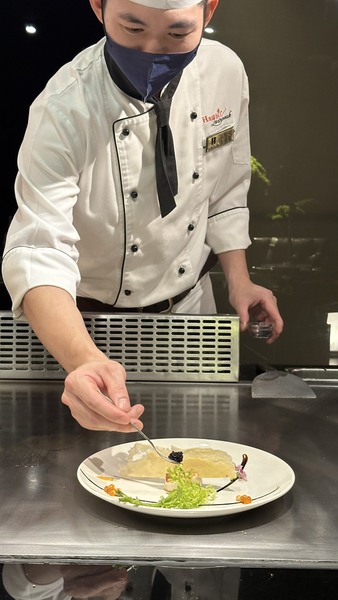 HANA 的客人種類更是多元,每次上門總讓人驚喜連連。2022年 NBA 籃球巨星「魔獸」德懷特・霍華德(Dwight Howard)來台時,更是三度光臨 HANA,高大的身影坐在鐵板前,與師傅、服務人員熱絡互動,成為店裡難得一見的畫面。也有許多影視名人或政界大人物,選擇在 HANA 包廂裡低調用餐,保有絕對的隱私。外國顧客更是源源不絕,這裡也是商務應酬與家庭相聚的理想場所。