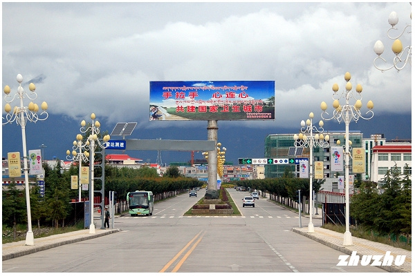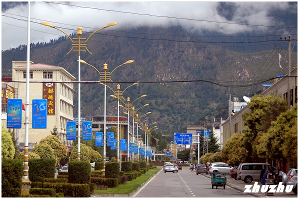 進入市區,道路和城市設施的名字也大多用援建省份、城市來命名,例如福建公園、廈門廣場等;還有廣東路、福建路、深圳大道、中山大道、韶關大道等道路縱橫交錯,為生活在這裡的人們提供極大的方便。走在寬敞舒坦的柏油路上,紅色的計程車、小巴士和摩托車快速地馳騁著,街道兩旁高聳的路燈整齊地排著長隊,綠色的電話亭鱗次櫛比,酒店、茶莊、公園、餐飲店、網吧、超市如雨後春筍般興起,「奇正」藏藥、「易貢茶葉」……等當地產品的廣告不時進入眼簾。