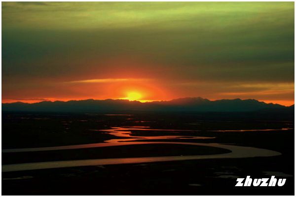太陽離地面有20多度的傾斜時,黑雲又慢慢瀰漫。陰陽轉換,就在這一時之間,古老的開都河帶著豔彩從天邊緩緩走來。當夕陽從雲縫中把萬道霞光射向草原,落日搖金,蜿蜒如蟒的九曲十八彎就映出了后弈射下的那九個太陽。清·吳璿《飛龍全傳》第七回:待我引他到九曲十八彎中,喚我那結義兄弟出來,就好與他算賬。九曲十八彎真可謂:曲折之水向東流,千曲百折始到頭。