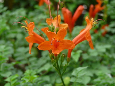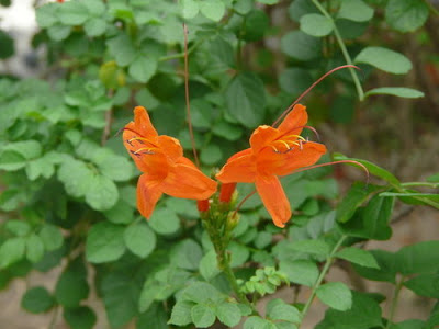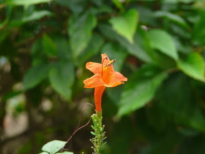 花形:總狀花序頂生,花冠長筒狀,上緣5裂,花長5公分,徑2~3公分,橙紅色,花絲伸出冠筒外。