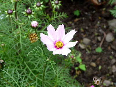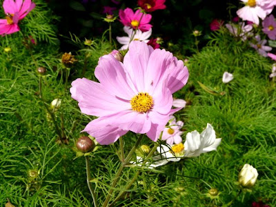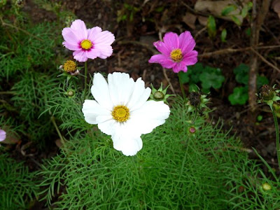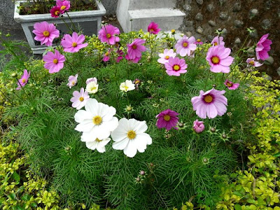 這些充滿生命力的波斯菊,並非生長在步道兩旁的土攘中,而是活在狹窄的大花盆裡。