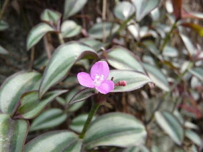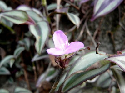 蔓生在地面、牆邊的吊竹草,總是以人海戰術大軍壓境之姿,攻城掠地。對於他們,我是心存敬畏,從來沒想過他們還會 開‧花‧對我而言,這可真是不得了的大新聞、大發現哪!