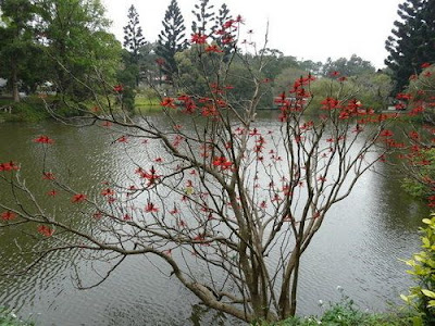 鮮豔奪目的朱紅色花瓣,如同火炬般,照亮著整個湖畔。