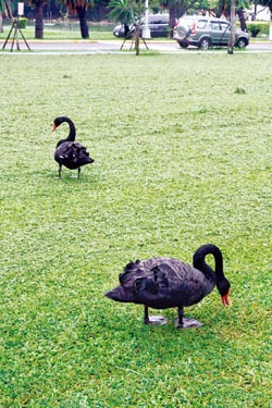 那隻痴望車身倒影找伴的黑天鵝已有伴侶的消息了。