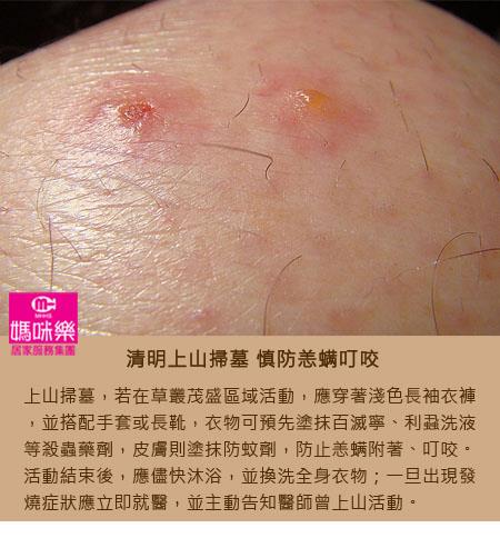 【清明上山掃墓 慎防恙螨叮咬】上山掃墓,若在草叢茂盛區域活動,應穿著淺色長袖衣褲,並搭配手套或長靴,衣物可預先塗抹百滅寧、利蝨洗液等殺蟲藥劑,皮膚則塗抹防蚊劑,防止恙螨附著、叮咬。
