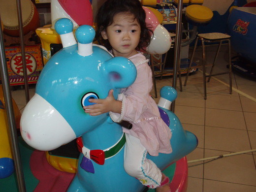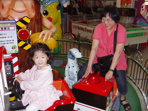 我只能等到和岡山阿公、阿嬤一起去賣場時才能坐到我最喜歡的火車,所以我最喜歡和岡山阿公、阿嬤去大賣場了,他們好疼我呦!