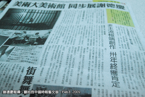 本文所翻拍自中國時報的報導網路原文~美兩大美術館 同步展謝德慶/吳垠慧/台北─紐約採訪(20090203)