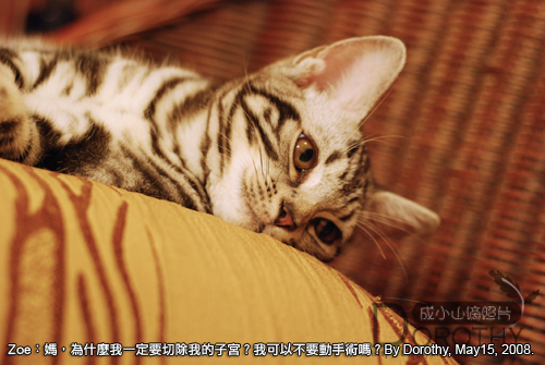 (感想:XD,聽過很多貓友有這樣經驗,我再說一遍,本文非反對結紮,而是為我們必須結紮的自私感到羞愧,結紮不是多光明的事情,當我們一昧的鼓吹結紮,也讓貓主人知道,結紮的利弊,那是一個選項、但不是最好的做法。)